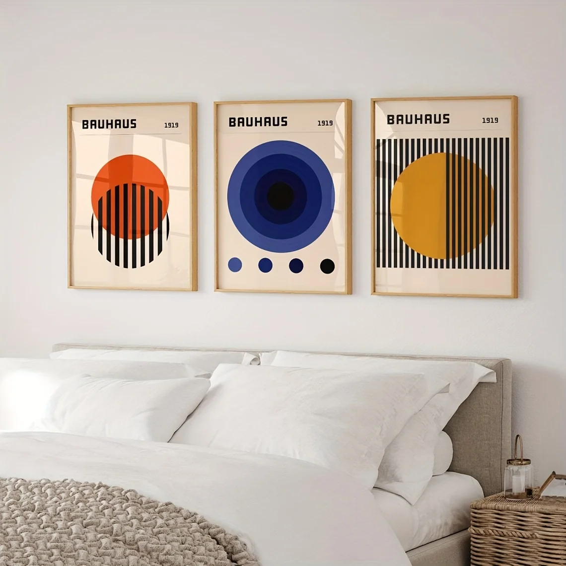 3pcs Bauhaus 1919 Canvas Wall Art Set, Mid-Century Modern Frameless Posters, Art Deco Style, Fashion Theme, Portrait Orientat